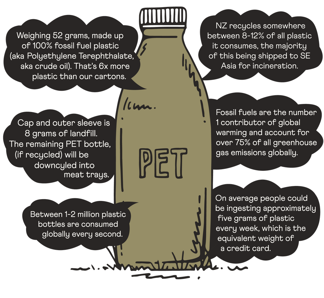 Our Tetra cartons have historically got a bad wrap in NZ, in large part due to fossil fuel lobbysts and miseducation. However, upon months of research and peer reviews diving into the footprints of all available packaging types, we decided to take the road less travelled and opt for our Tetra Pak cartons. No thank you to the plastic Kool-Aid.
